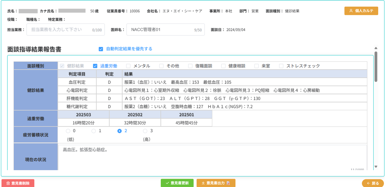 産業医意見書・就業判定