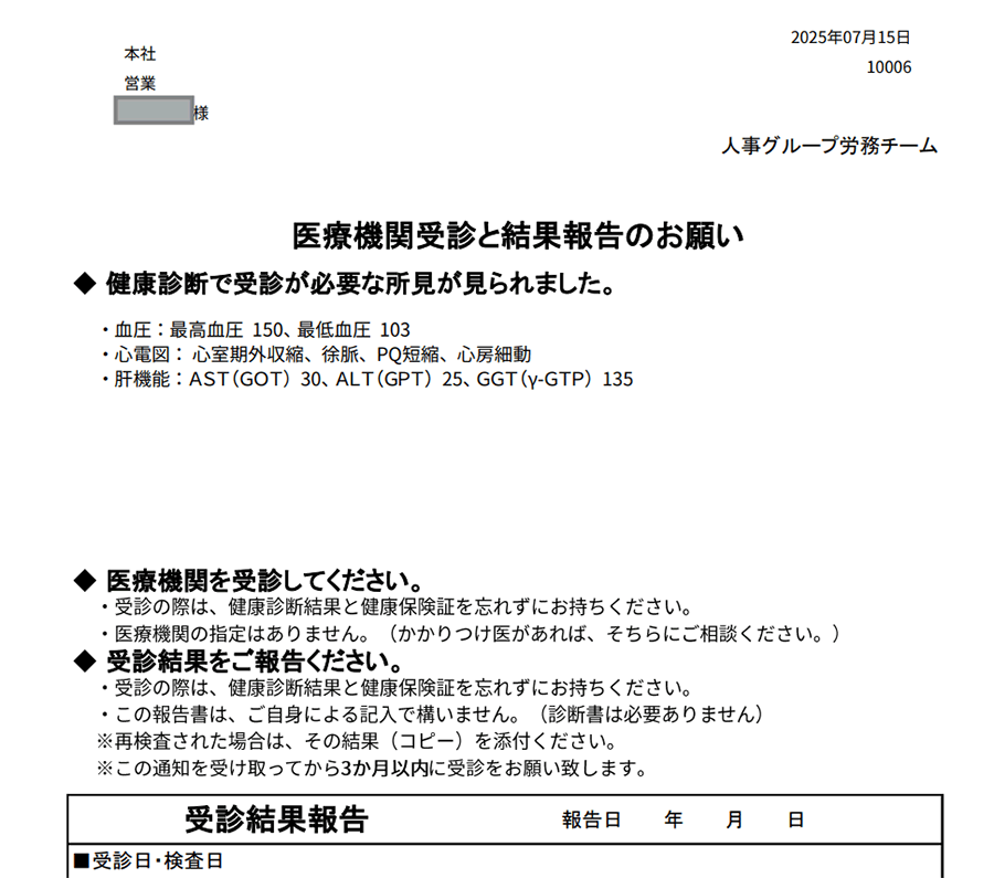 二次検査受診勧奨