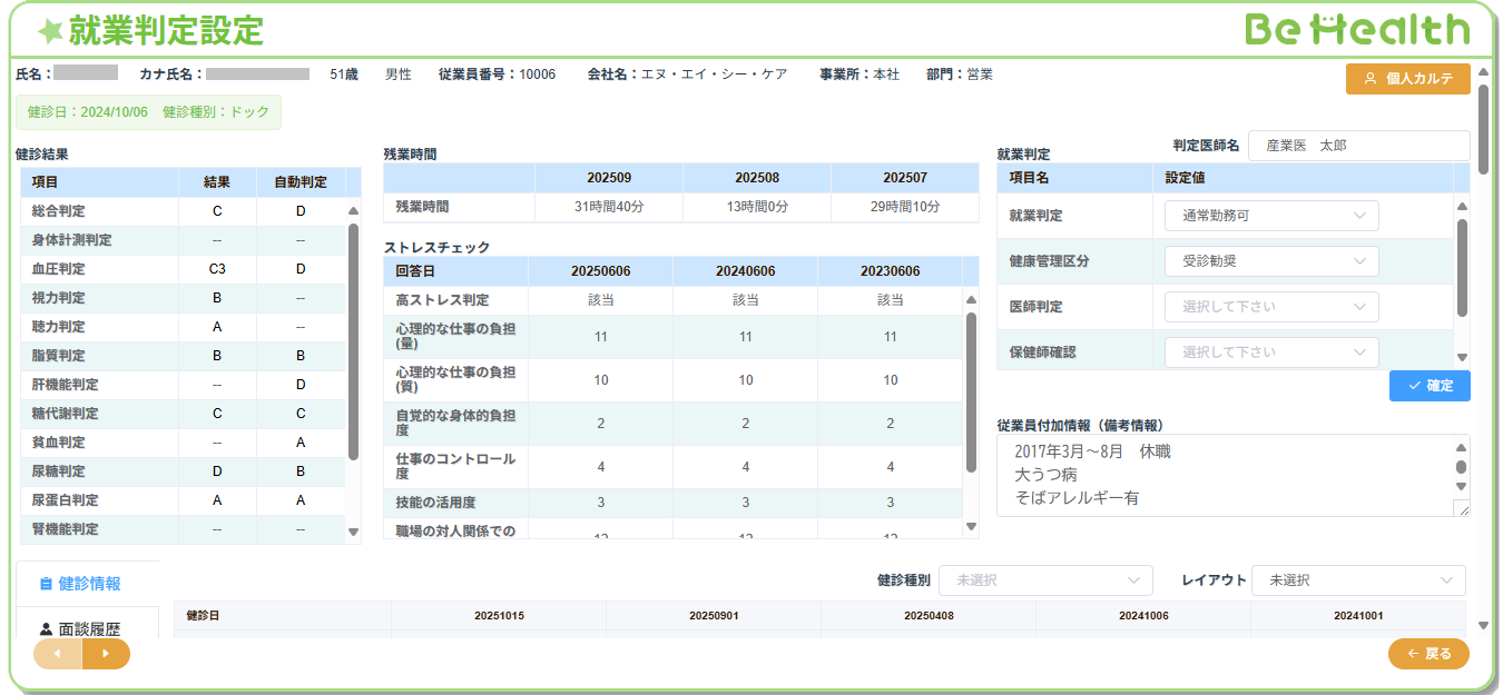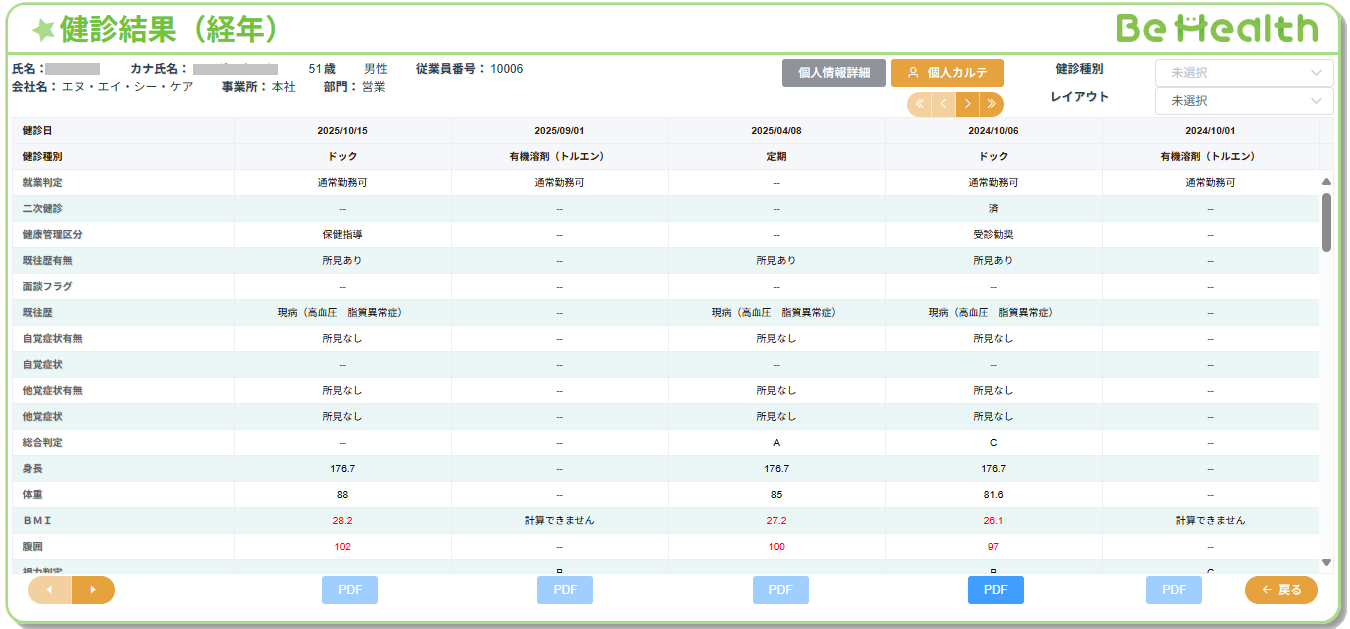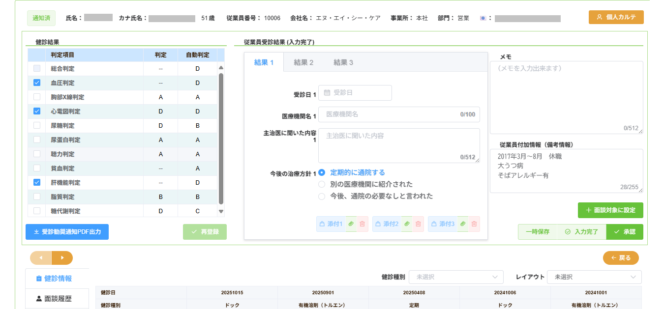 健康診断結果管理